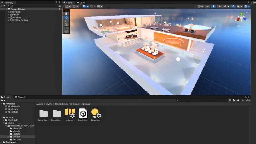 海上に浮かぶリゾートハウスです。 ゆったりとくつろげる空間をイメージして制作しました。 オブジェクト関連の3DCGオブジェクトはすべてフルスクラッチで制作しています。 Resort Houseに遊びに ...