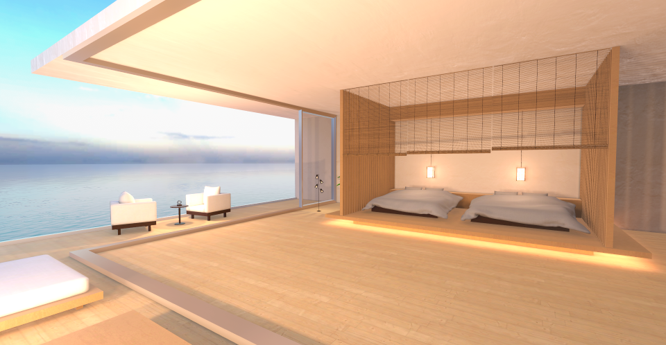 海上に浮かぶリゾートハウスです。